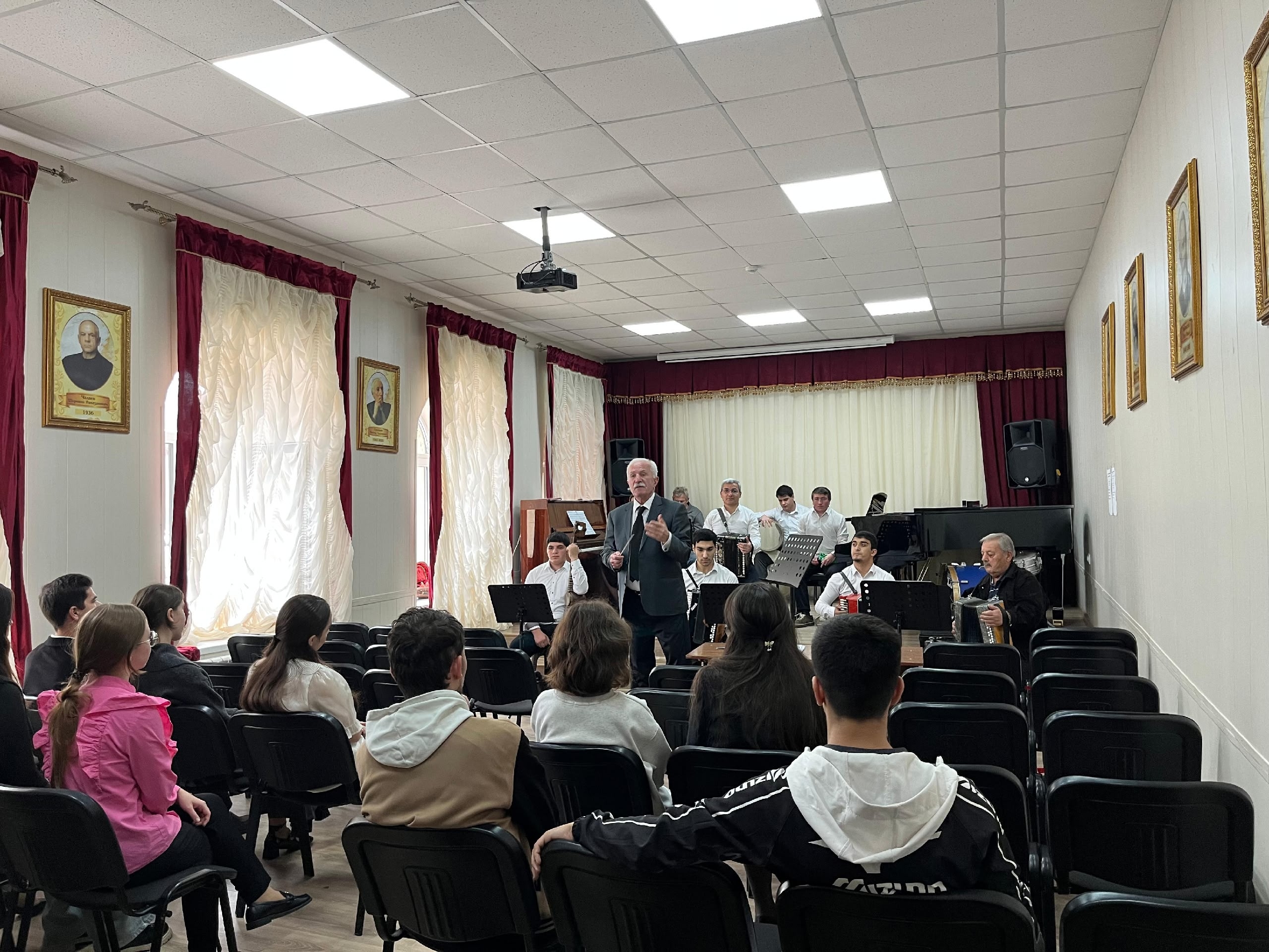 11 ноября преподаватель высшей категории, заслуженный деятель искусств Республики Дагестан Н. Шахмурадов провел мастер-класс "Оркестр народных национальных инструментов.’’ Участники ознакомились с особенностями игры в студенческом народном оркестре. Насир Бабаевич пояснил особенности совместной игры, рассказал о роли каждого инструмента в творческом коллективе, пояснил значение некоторых дирижерских жестов. Участники узнали историю создания студенческо-преподавательского коллектива. Мастер-класс прошел по Пушкинской карте. Прозвучали произведения: П. Киберов «Хуш я рикIиз», А. Бабаев «Мама», Ж. Бизе Увертюра к опере «Кармен», М. Теодоракис «Сагапо», азербайджан