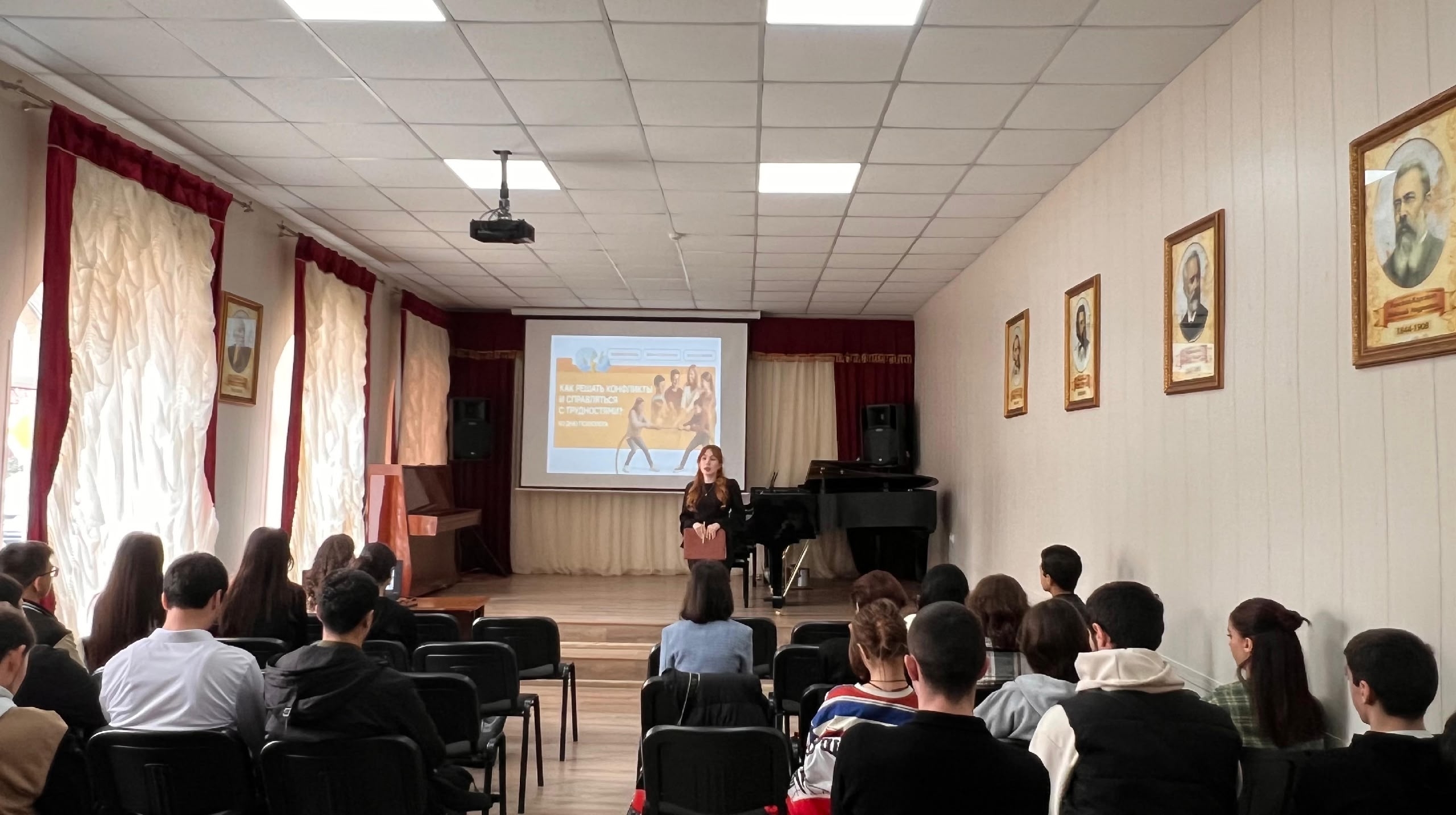 17 ноября преподаватель ДМУ Залике Арсеновна Шихмурадова провела занятие «Разговоры о важном» на тему: «Как решать конфликты и справляться с трудностями».