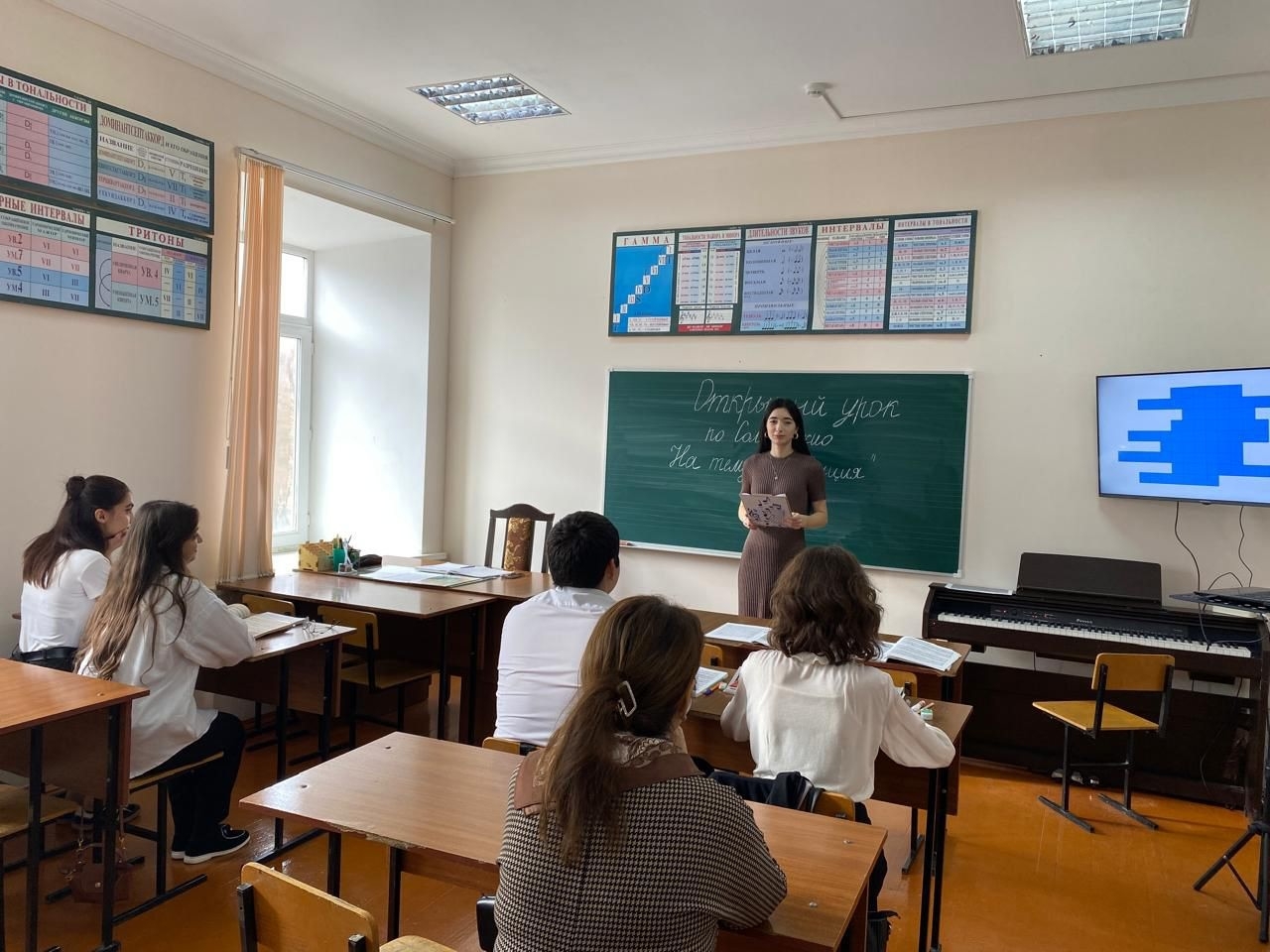 Учащиеся распевались на примерах секвенции. Педагог провела опрос и закрепила новую тему исполнением номеров из учебника по сольфеджио. В конце урока был проведен слуховой анализ. На уроке присутствовали: заведующий учебной частью Магомедов А.Р., заведующая теоретическим отделением Абдуллаева С.А., педагоги Сеидова С.О., Шихмурадова Н.Н., Аскерова А.М., Гаджиева З.М., Г