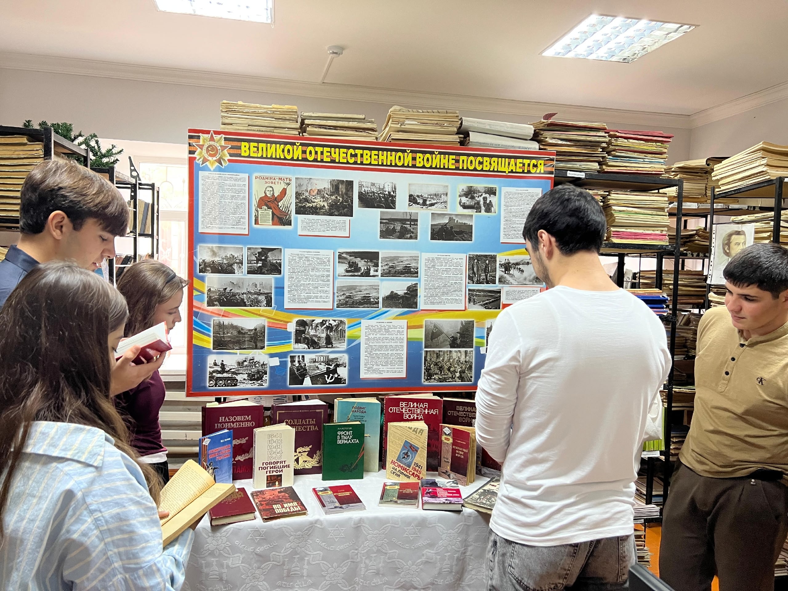 Книжная выставка памяти Великой Победы. 26 ноября открыта книжная выставка «Страницы книг расскажут о войне», с произведениями, хранящими память о тех героических годах. На стендах представлены документальные издания, мемуары фронтовиков, художественная литература. Эти книги рассказывают о мужестве солдат, тружеников тыла, помогают понять какой ценой была завоевана Победа.Выставку к 80-летию Победы в Великой Отечественной войне подготовили педагог общеобразовательных дисциплин Гаджиева Ш.Х и библиотекарь Кулиева Л.Р.