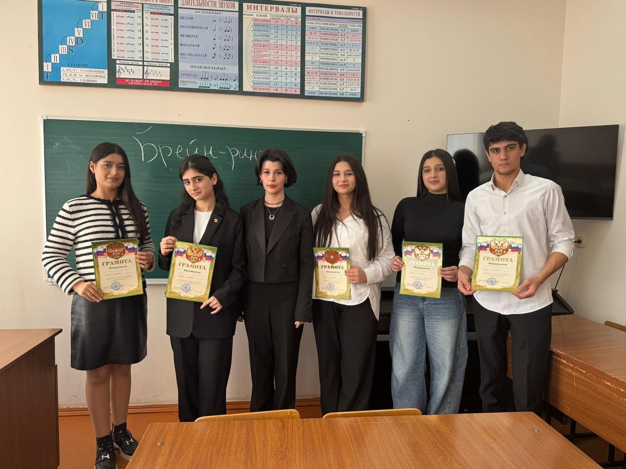 5 декабря в ДМУ состоялся брейн-ринг по Элементарной теории музыки среди студентов 2 курса. В знании предмета соревновались две команды: «Симфония» и «Гармония». Студенты отвечали на устные вопросы, так же выполняли письменные задания. Отдельный конкурс был проведен между капитанами команд. Участники показали хорошие знания по предмету. Брейн-ринг прошел в дружеской, творческой обстановке с присутствием соревновательного духа. Состав жюри: директор Махмудова К.Г., завуч Магомедов А.Р., преподаватели Ахмедова Г.И., Сеидова С.О., Шихмурадова З.А. По результатам конкурсов победила команда «Гармония». Организовала и провела брейн-ринг заведующая ПЦК «Теория музыки» Абдулаева Сабина