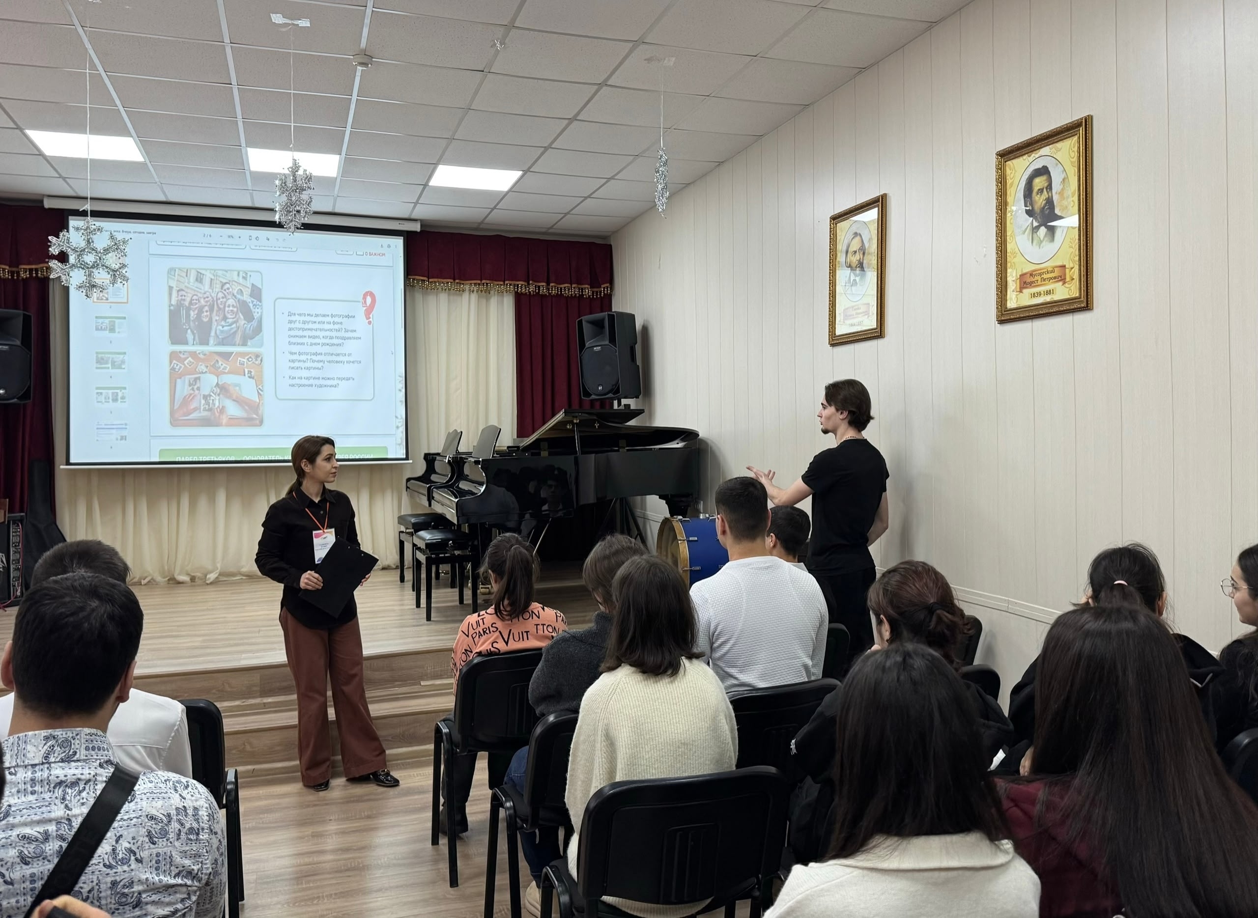 19 января советник директора по воспитанию Гаджиева Зурият Магамедрасуловна провела со студентами 1-4 курсов единый классный час в рамках «Разговоров о важном». Темой урока было «Музейное дело", посвященное 170-летию Третьяковской галереи. Начался урок, традиционно, с Гимнов РФ и РД, затем педагог презентовала историю происхождения праздника, продемонстрировала видеоролик с интервью одного из сотрудников Третьяковской галереи, провела со студентами викторину. Зурият Магамедрасуловна рассказала о том, что музеи являются хранителями культурного и исторического наследия страны. Особое внимание на классном часе было уделено тому, что сохранение таких ценностей является приоритетом государственной политики.