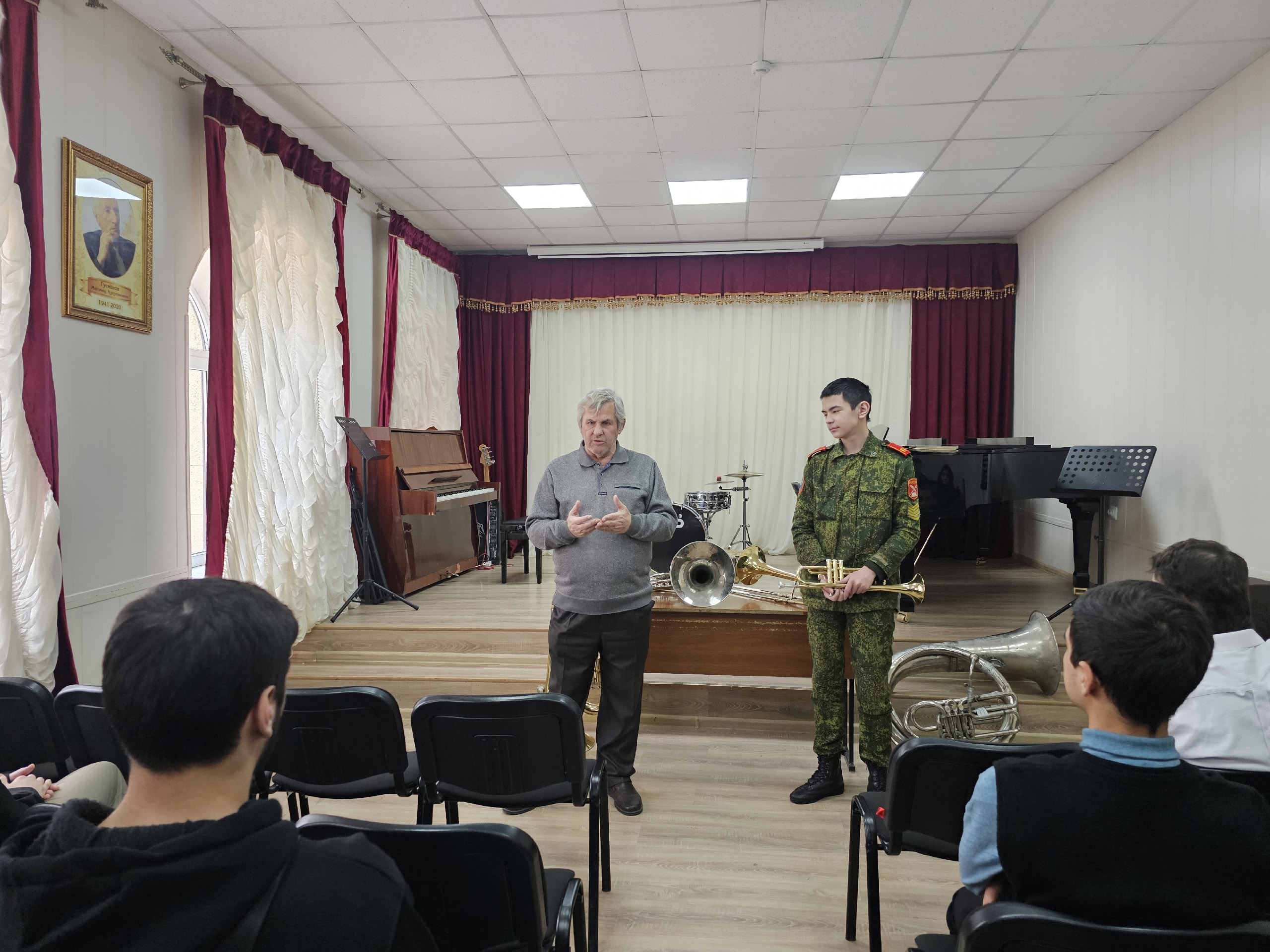 6 февраля в ДМУ состоялся мастер-класс преподавателя отделения духовых инструментов А. М. Русакевича. Анатолий Михайлович рассказал об истории появления инструментов. Учащиеся Велиханов Магомед и Пашаев Паша, а также воспитанник Омаров Расул класса духового оркестра из ДШИ №3, продемонстрировали приёмы игры на трубе, валторне, теноре, тубе, тромбоне, геликоне. Для демонстрации возможностей инструментов на сцену вышли солисты и ансамбли. Мероприятие прошло по Пушкинской карте.