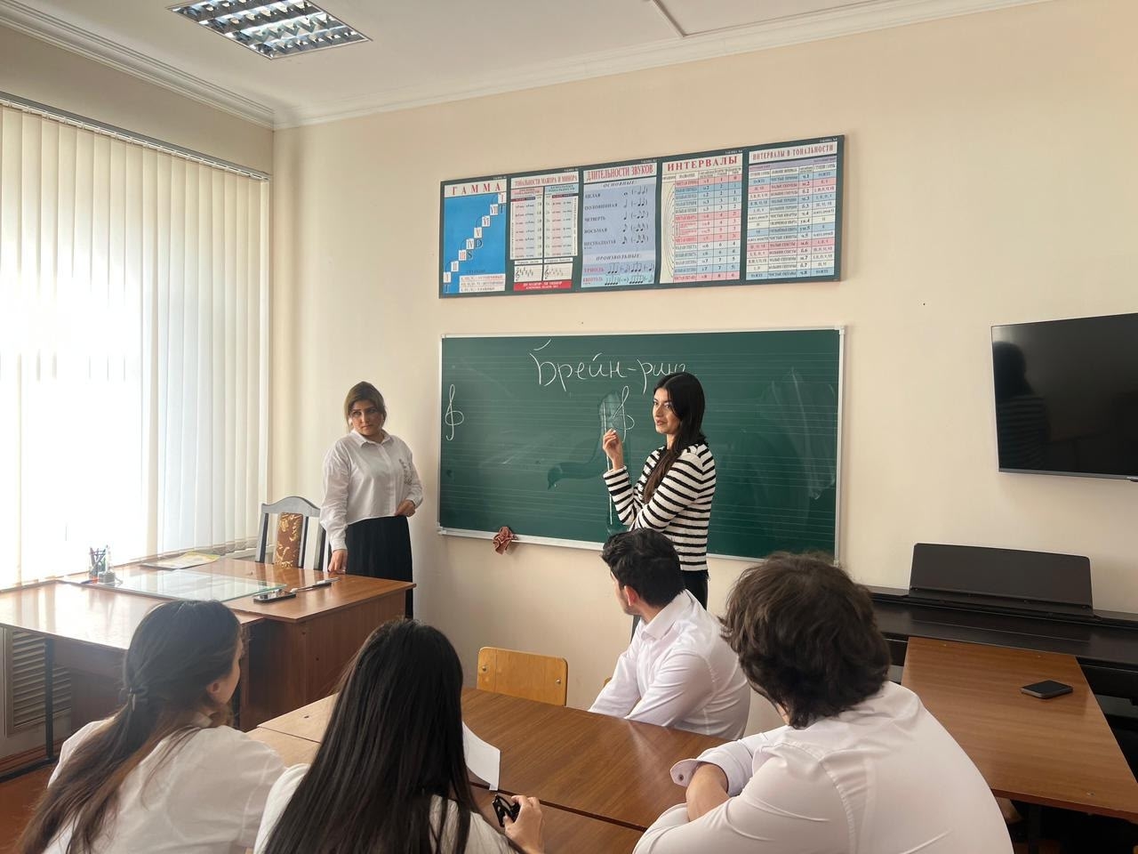 5 декабря в ДМУ состоялся брейн-ринг по Элементарной теории музыки среди студентов 2 курса. В знании предмета соревновались две команды: «Симфония» и «Гармония». Студенты отвечали на устные вопросы, так же выполняли письменные задания. Отдельный конкурс был проведен между капитанами команд. Участники показали хорошие знания по предмету. Брейн-ринг прошел в дружеской, творческой обстановке с присутствием соревновательного духа. Состав жюри: директор Махмудова К.Г., завуч Магомедов А.Р., преподаватели Ахмедова Г.И., Сеидова С.О., Шихмурадова З.А. По результатам конкурсов победила команда «Гармония». Организовала и провела брейн-ринг заведующая ПЦК «Теория музыки» Абдулаева Сабина Айнуллаховна.