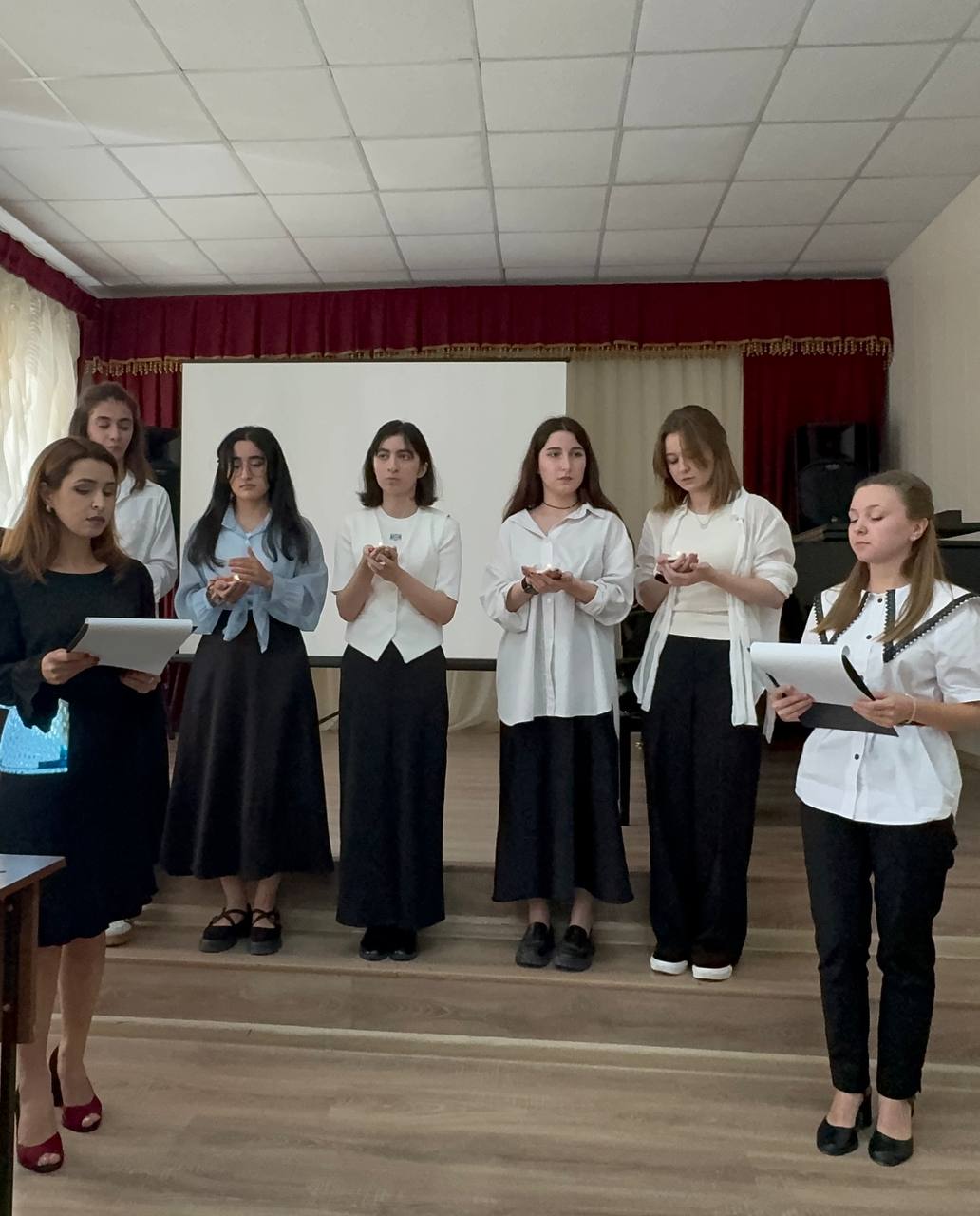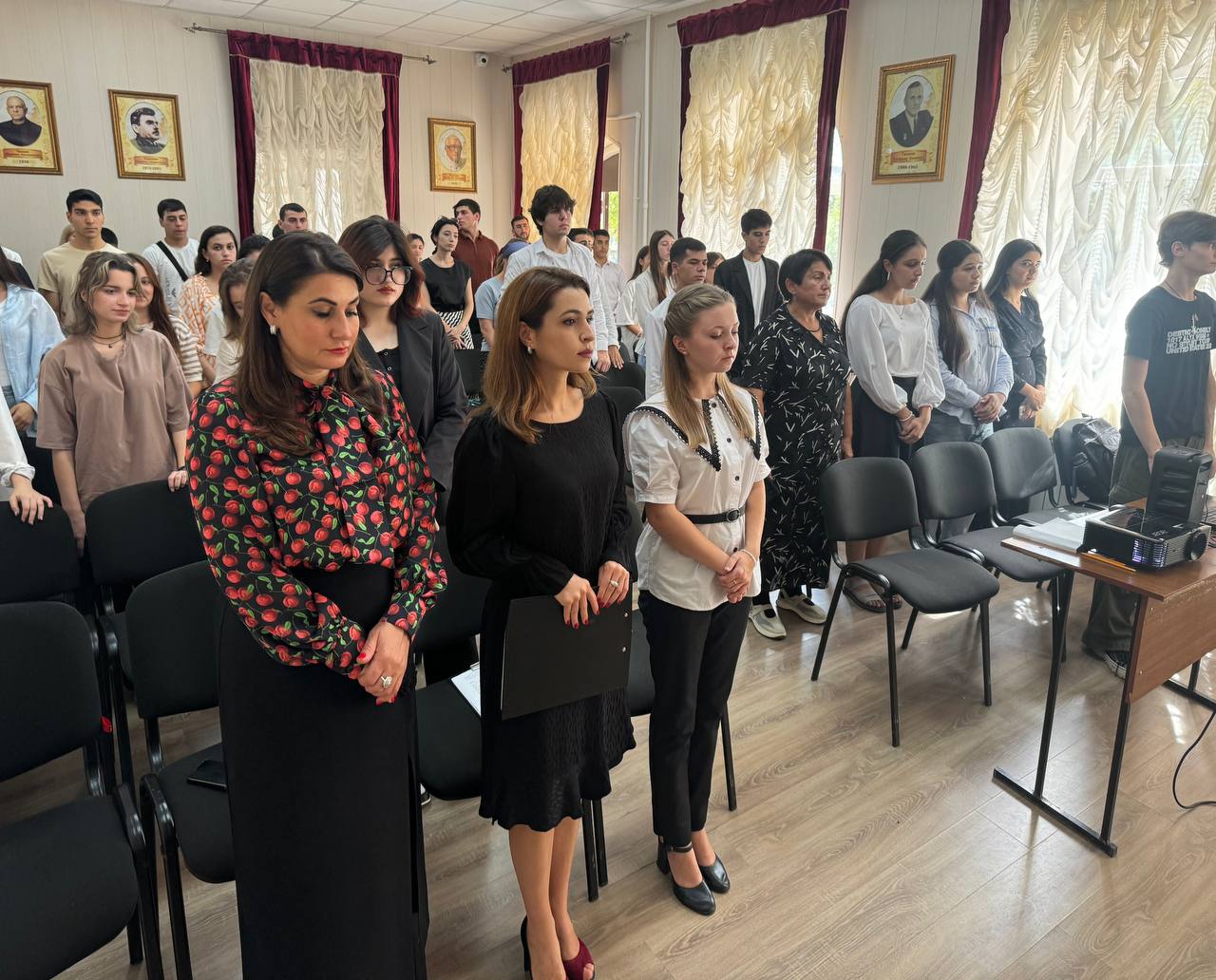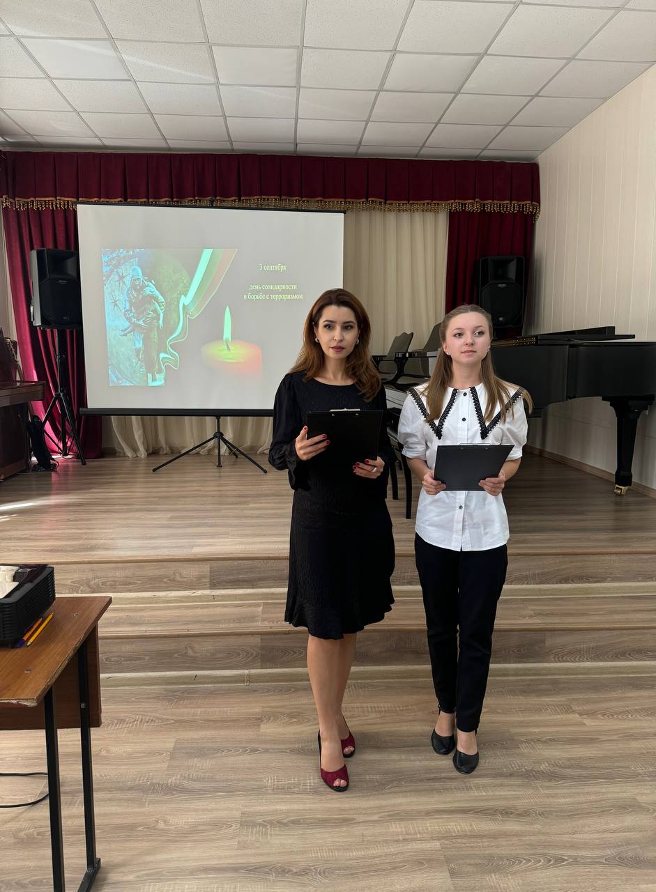 3 сентября - День солидарности в борьбе с терроризмом. Во всех учебных заведениях проводят тематические мероприятия, приуроченные к этой дате. Традиционно, каждый год советник директора по воспитанию -Гаджиева З.М. готовит мероприятие, посвященное жертвам Беслана. Совместно со студентами был подготовлен и проведен урок мира, на котором вспомнили: о террористических актах, совершенных в России за последние годы, о страшной трагедии, произошедшей ровно 20 лет назад в городе Беслан. Студентки - Гаджибабаева Аиша и Гаджикеримова Фатима прочитали проникновенные стихи о детях Беслана, которые невозможно слушать без слез… Далее минутой молчания почтили память погибших от рук бандитов. Мероприятие сопровождалось видеопрезентацией и музыкальным оформлением: в исполнении студенток - Панаевой Мадины и Абдуллаевой Ирады прозвучала песня «Аист на крыше», которая является символом мира.В роли ведущих : Гаджиева Зурият Магамедрасуловна и студентка Гурина Надежда.