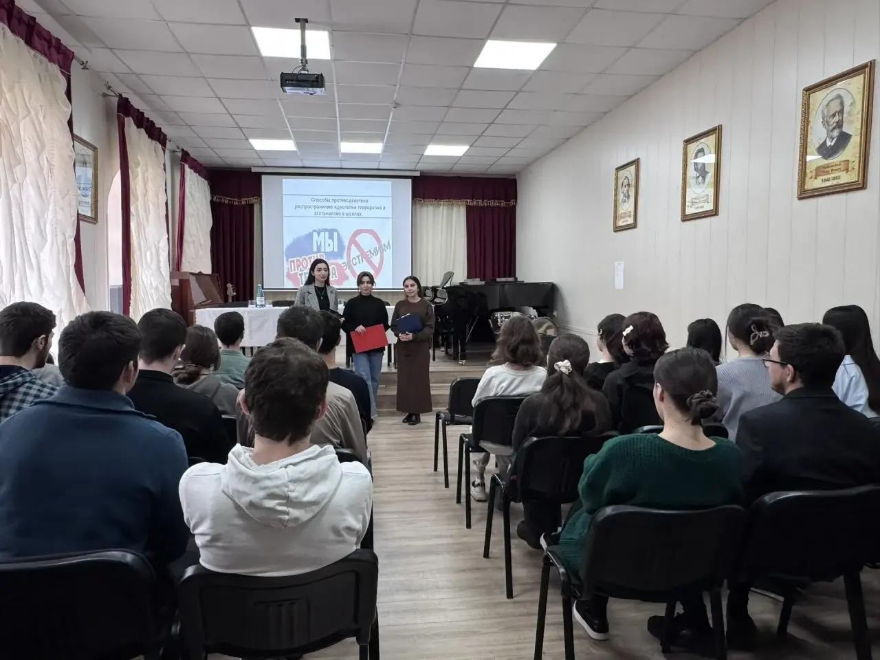 11 февраля в ДМУ прошёл единый классный час на тему «Терроризм.Основные меры предосторожности» В качестве спикеров были приглашены: руководитель отдела просвещения по г. Дербент при Муфтияте РД Сапарчаев Гаджи Магомедаминович, участковый уполномоченный ОМВД России по г. Дербент лейтенант Курбанов Ильман Ильясович, представитель АТК Касимов Лятиф Имамунтдинович, участник СВО Мурсалов Казимагомед Магомедович. Провели мероприятие ответственная по АТК Абдурахманова В.В., ответственная по воспитательной работе Аскерова Б.М. и советник директора по воспитательной работе Гаджиева З.М.