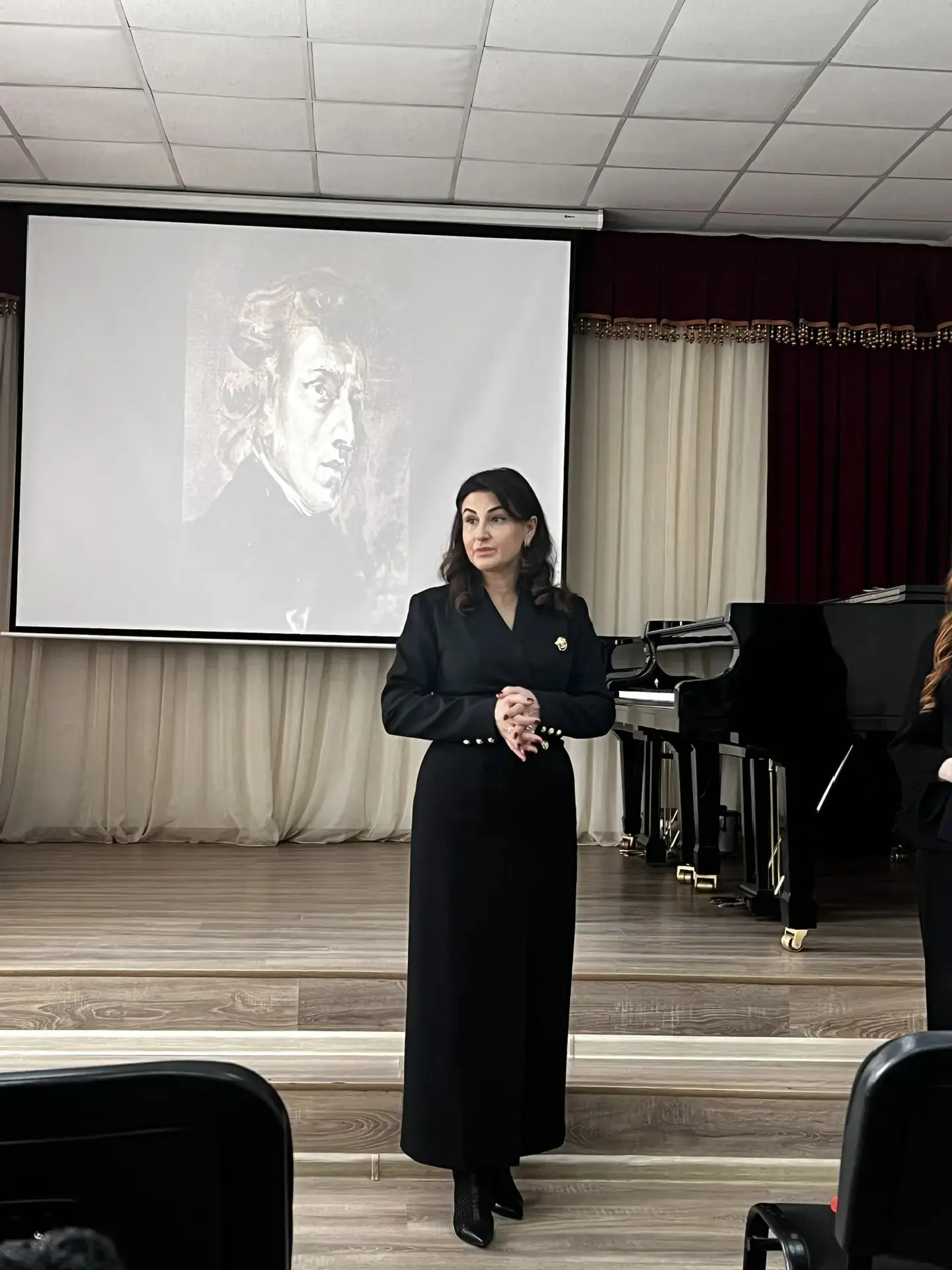 18 февраля педагог ДМУ Шихмурадова З. А. провела лекцию-концерт на тему: «Творчество польского композитора Ф. Шопена». В ходе мероприятия Залике Арсеновна рассказала о жизненном и творческом пути Шопена, его наследии, акцентируя внимание на произведениях для любимого инструмента — фортепиано, а также на вокальных сочинениях. Прозвучали произведения "Фантазия-Экспромт", ноктюрны, "Прощальный вальс" и романсы. Залике Арсеновна подчеркнула, что творчество Шопена продолжает вдохновлять людей и в наши дни, побуждая создавать и писать собственную музыку. Преподаватель отметила, что произведения Шопена остаются актуальными и находят отклик в сердцах слушателей, даже спустя много лет после создания.