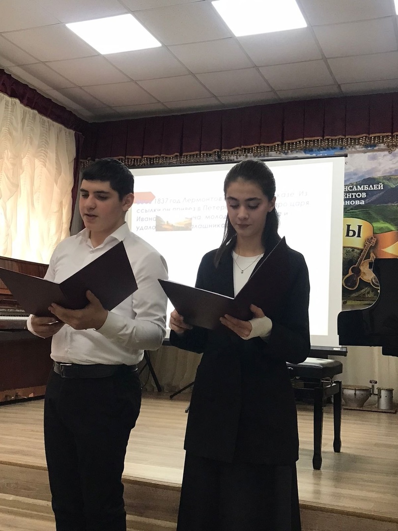 27 ноября преподавателями отделения общеобразовательных дисциплин Ш. Х. Гаджиевой и В. В. Абдурахмановой был проведен литературно-музыкальный вечер, посвященный 210-летию М. Ю. Лермонтова. Прозвучали песни: "Выхожу один я на дорогу" в исполнении студентки 4 курса Гуриной Н. и "И скучно, и грустно"- Гасанов Али студент 1 курса. Стихи читали студентки 1 курса: Ушанова Ф., Рзаева В., Каибова М., Чураева М. Вели мероприятие студенты 2 курса: Байрамова Фатима и Шихалиев Рамазан.