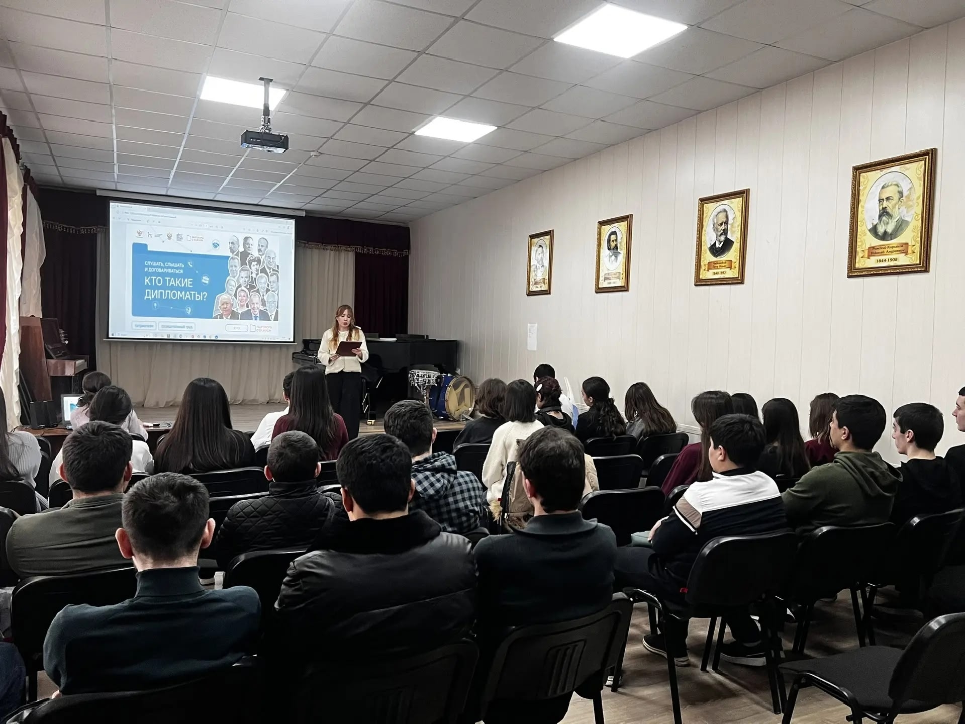 9 февраля в зале ДМУ преподаватель Шихмурадова З.А. провела занятие «Разговоры о важном», посвященное дипломатии. В ходе занятия студенты смогли углубить свои знания о роли дипломатов в международных отношениях, познакомились с принципами конструктивного диалога и эффективной коммуникации. Преподаватель акцентировала внимание на важности уважения и ответственности в общении, а также на том, что дипломатия — это искусство договариваться, выстраивать взаимовыгодные отношения и применения дипломатических инструментов в повседневной жизни, а также вместе со студентами выполнили интерактивные задания. Учащиеся активно участвовали в беседе, приводили исторические примеры и работали над стратегией ведения переговоров.