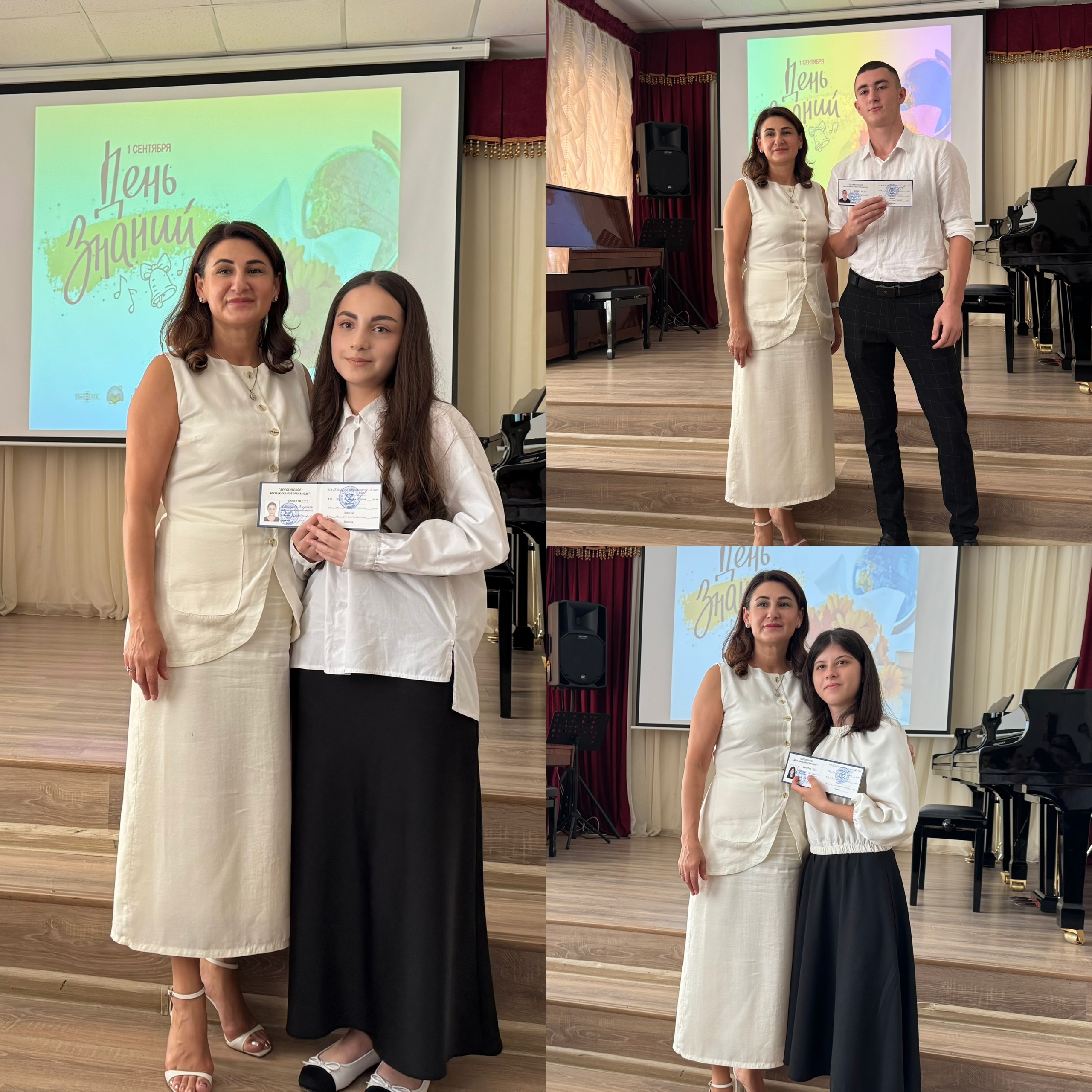 1 сентября, в Дербентском музыкальном училище им.Ашурова прошла торжественная Линейка в честь Дня знаний. Началось праздничное мероприятие с Гимна Р.Ф. и Гимна Р.Д. Советник директора по воспитанию - Гаджиева З.М. поприветствовала студентов и педагогов, поздравила с началом нового учебного года. Далее был продемонстрирован видео-экскурс о становлении и жизни училища. Так, в рамках этого видеоролика, новоиспеченные студенты познакомились с историей училища, его традициями, достижениями, запоминающимися моментами. Затем слово было предоставлено директору училища - Махмудовой К.Г., которая начала свое выступление со слов поздравлений, напутствий и пожеланий. Далее прошла церемония вручения студенческих билетов студентам 1 курса. В торжественной обстановке студенческие билеты вручили студентам отделений: «Хоровое дирижирование», «Народное отделение», «Сольное и хоровое народное пение». Дорогие наши студенты! Мы поздравляем вас с новым и увлекательным этапом жизни, с удовольствием открываем для вас двери нашего училища и принимаем в нашу дружную музыкальную семью!