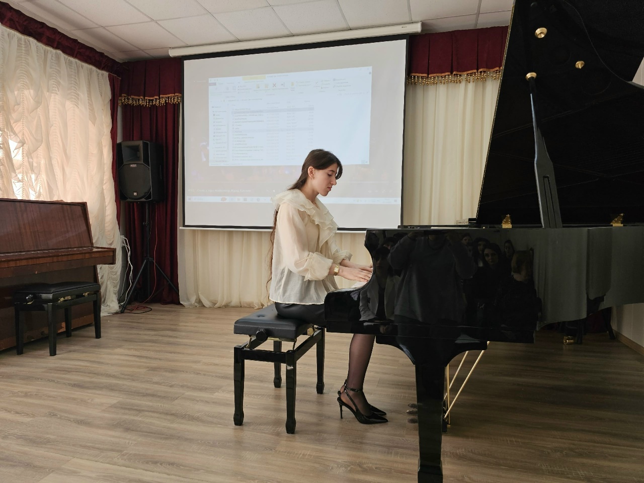 13 декабря на сцене ДМУ прошёл вечер фортепианной музыки, посвященный творчеству выдающихся композиторов Республики Дагестан. Зрителям представили произведения, написанные в разных жанрах, от симфонических до народных песен. В программу концерта вошли известные композиции таких мастеров, как Мурад Кажлаев, Готфрид Гасанов, Ширвани Чалаев, Наби Дагиров, Сергей Агабабов, Аида Джафарова и других. Организаторы вечера – Т. Н. Сулейманова и Г. И. Ахмедова – сумели создать увлекательное путешествие в мир уникальных национальных мелодий, традиционных ритмов и утонченных гармоний горских народов. Мероприятие стало настоящим подарком поклонникам искусства и шансом открыть новые грани самобытной музыкальной культуры Дагестана. В концерте приняли участие воспитанники ДМШ и ДШИ Дербента, студенты музыкального училища. В заключение, подводя итоги лекции-концерта, директор ДМУ К.Г. Махмудова сказала: "Когда в международном аэропорту, за границей слышится музыка Готфрида Гасанова - уроженца Дербента, композитора, педагога, основоположника дагестанской классической музыкальной культуры, - от гордости за земляка вырастают крылья".