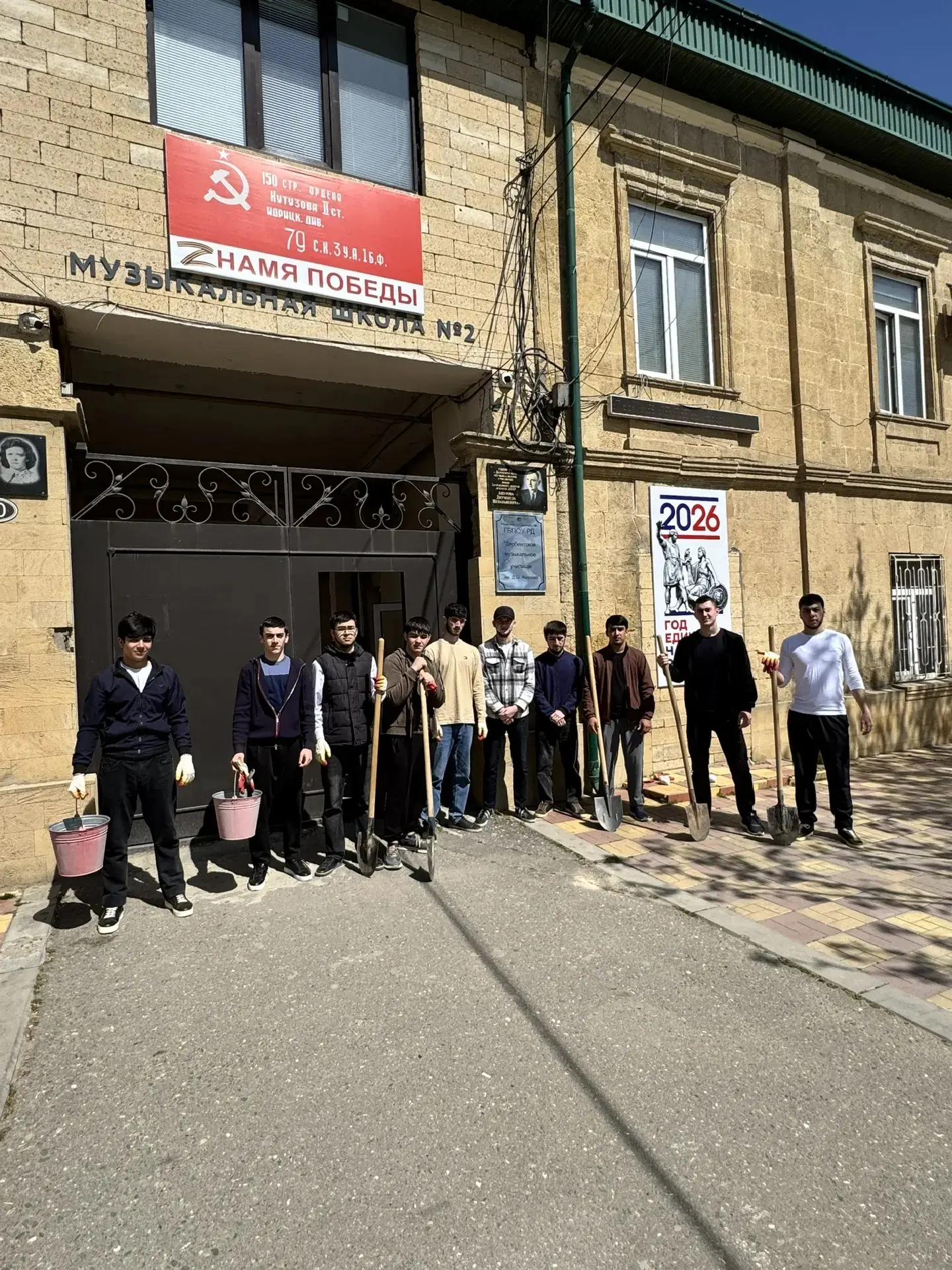 18 апреля учащиеся и педагоги ДМУ приняли участие в городском субботнике. Очистили прилегающую территорию от скопившегося растительного мусора, вскопали газоны, окопали деревья, побелили стволы деревьев, удалили траву, проросшую сквозь тротуатную плитку. Собрали и вывезли собравшийся сор.