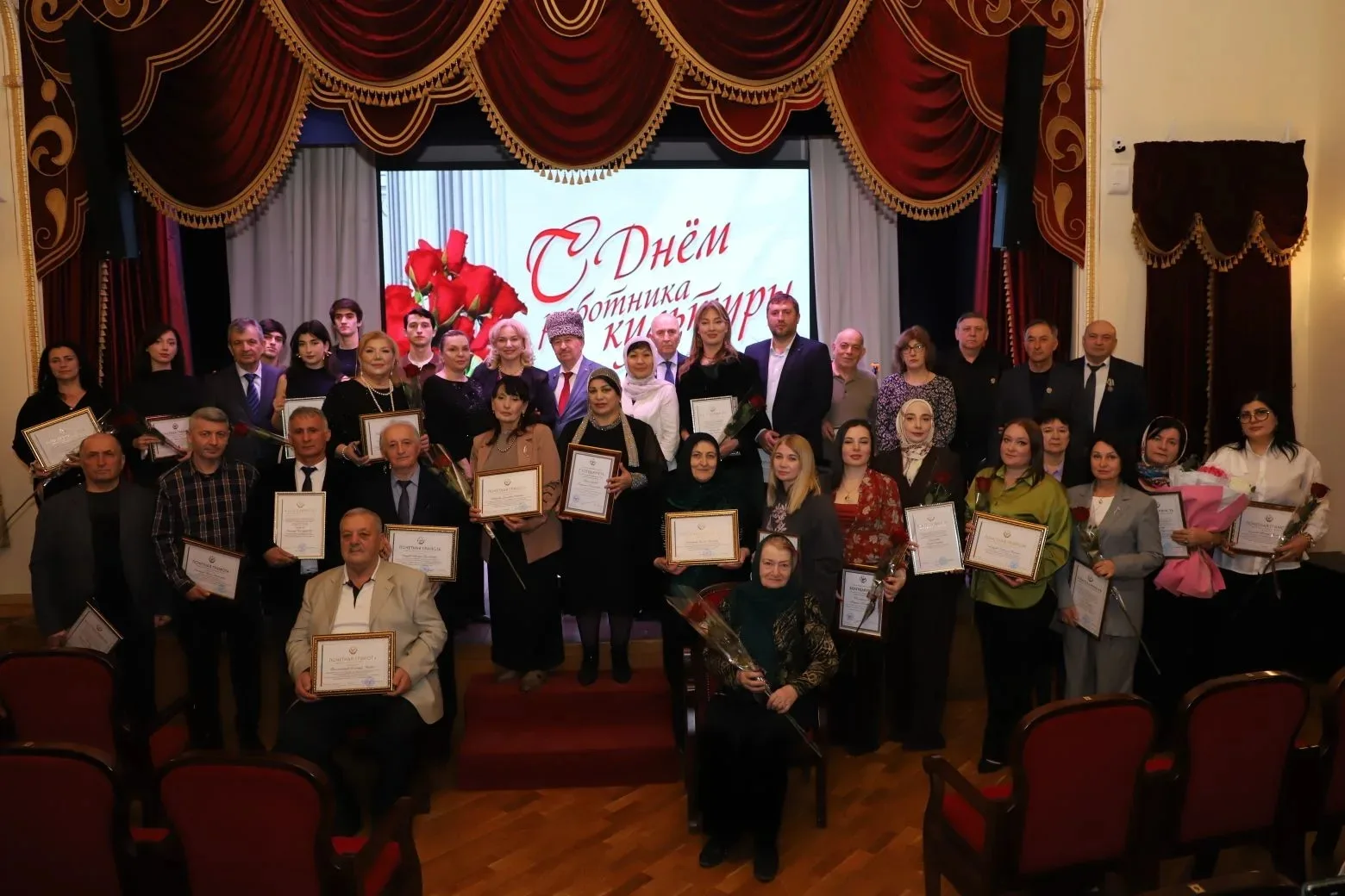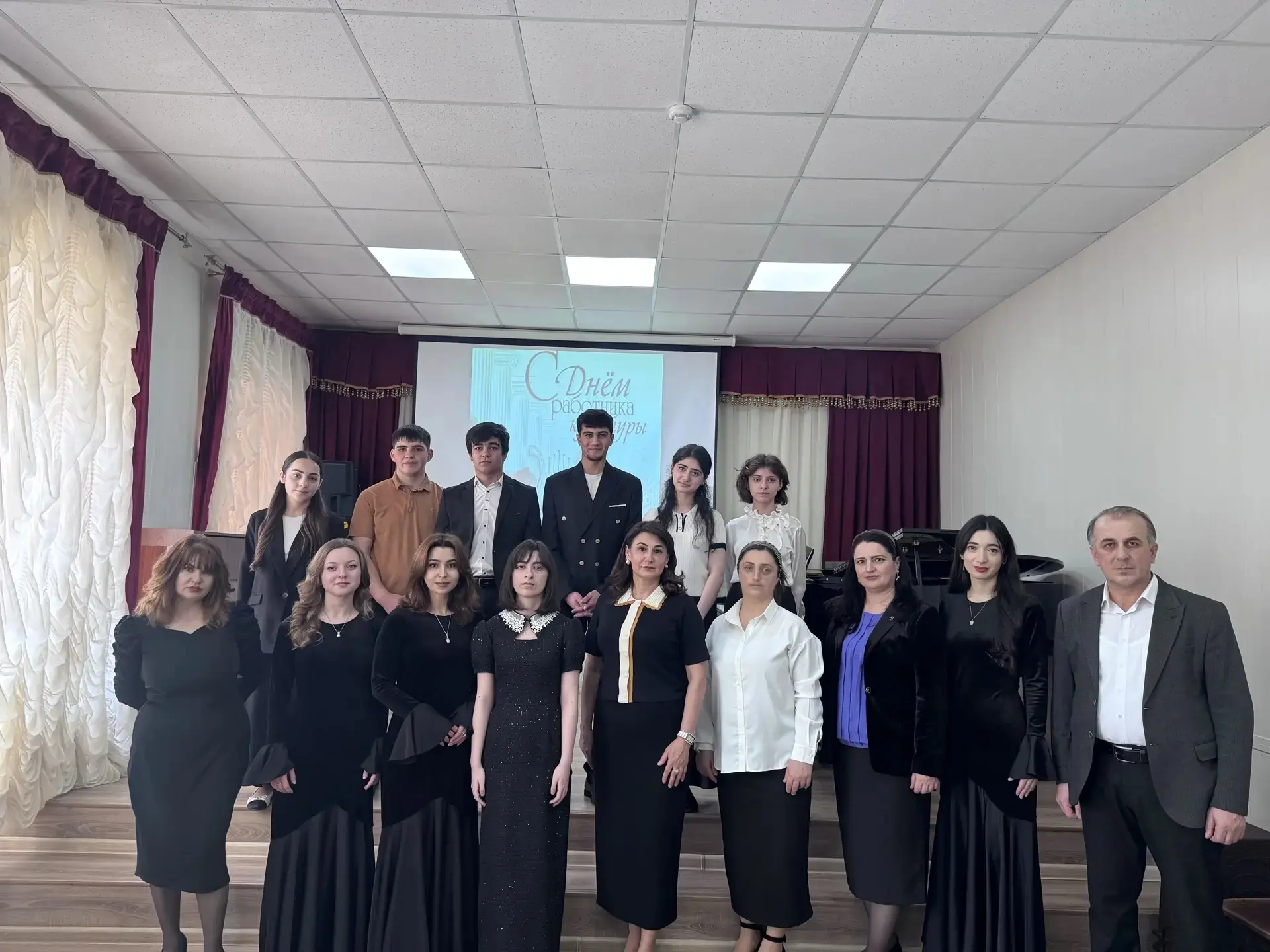 25 марта в актовом зале Дербентского музыкального училища состоялся праздничный концерт ко Дню работника культуры Ведущие, студентки отделения «Фортепиано» - Ахмедова Хадижа и Рзаева Вилаят, поздравили педагогов и студентов с праздником и предоставили слово директору училища, заслуженному работнику культуры РД Махмудовой Камиле Гаджимурадовне, которая вручила Почетные грамоты министра культуры РД педагогам, заслуженным работникам культуры РД - Гюльмагомедову Иманулле Агаевичу и Хаирову Мавлюдину Гамзабековичу. Силами педагогов и студентов были подготовлены красочные и колоритные номера. В программе концерта прозвучали произведения русских и дагестанских композиторов. В концерте участвовали: -ансамбль и солист отделения «СХНП», -ансамбль тар