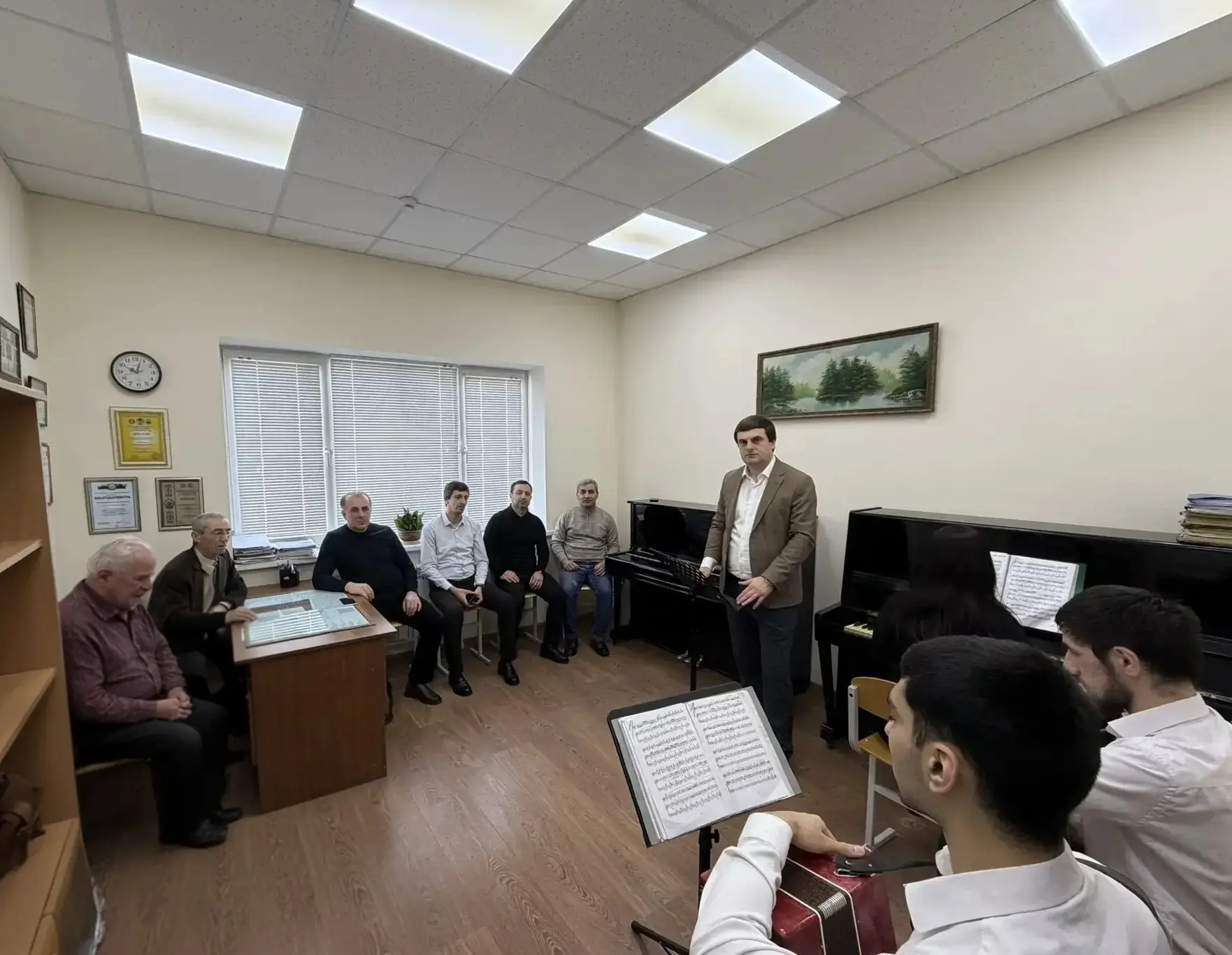 18 марта на отделении "Инструментальное исполнительство. Инструменты народного оркестра" ДМУ состоялся открытый урок преподавателя Р. И. Рамазанова на тему: "Совершенствование исполнительского мастерства в процессе ансамблевого музицирования". Руслан Исамудинович поделился секретами подготовки студентов для успешного выступления в составе ансамбля. Предваряя исполнительскую часть, преподаватель рассказал, какие разнообразные приёмы использует в педагогической практике. Опыт и результаты оказались интересными. Педагоги по достоинству оценили новшества, назвали новыми некоторые приёмы и методики развития технических навыков у студентов, особенно для ансамблей меховых инструментов. Урок проводился со студентом Радимом Бабаевым,