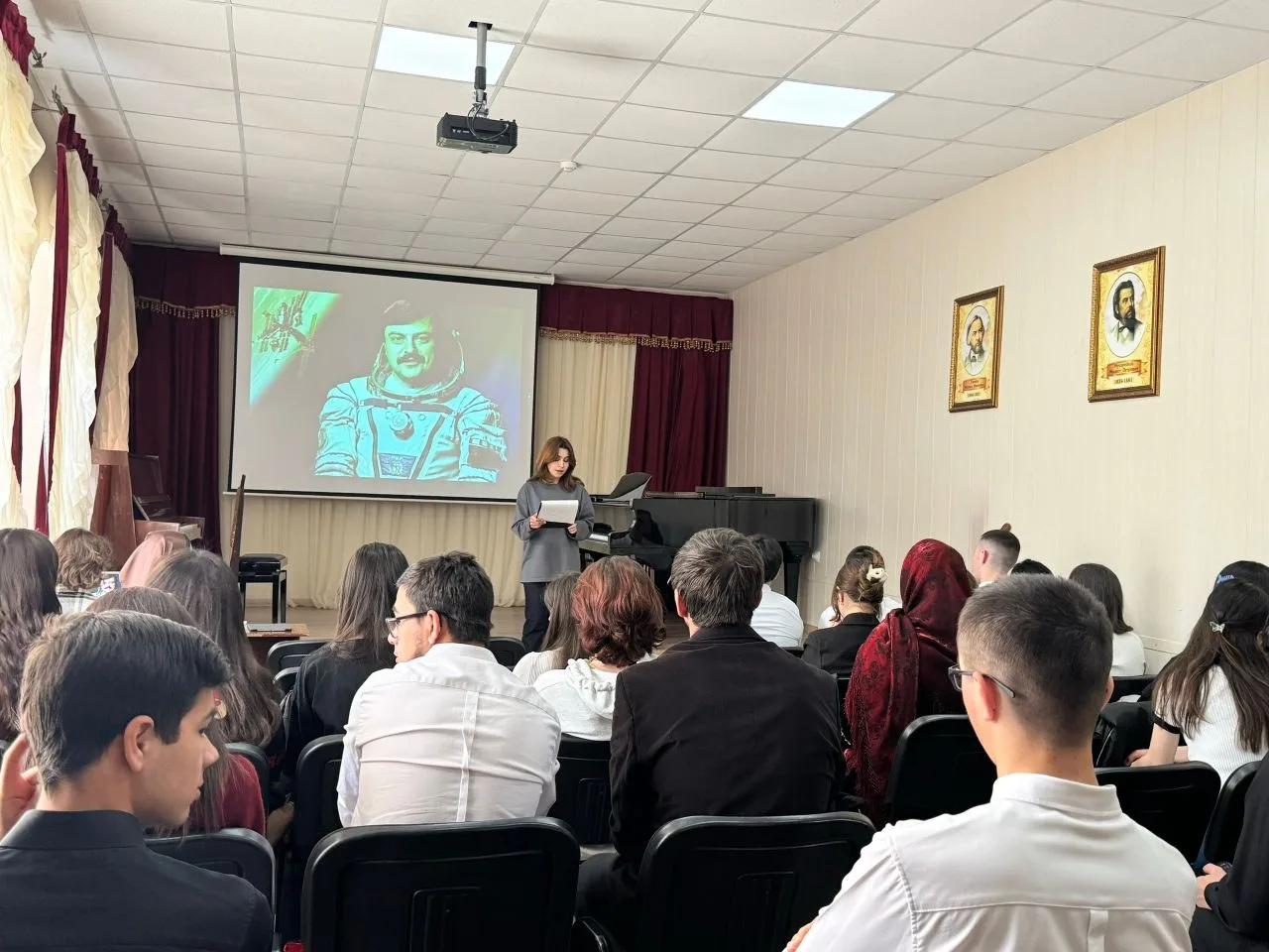 В преддверии Дня космонавтики в Дербентском музыкальном училище прошел единый классный час. Советник директора по воспитанию З. М. Гаджиева рассказала о том, как 65 лет назад, 12 апреля 1961 года, Юрий Гагарин совершил первый полет в космос, открыв новую страницу в истории человечества. Подвиг стал возможен благодаря титаническому труду ученых, инженеров, конструкторов и всех, кто верил в покорение безграничной Вселенной. Педагог представила презентацию о земляке, герое СССР, летчике-космонавте Мусе Манарове, ознакомила студентов с биографией и рассказала о значительном вкладе Манарова в развитие пилотируемой космонавтики. Учащиеся отвечали на вопросы, активно участвовали в ходе урока, дополняя тему своими знаниями о космосе.