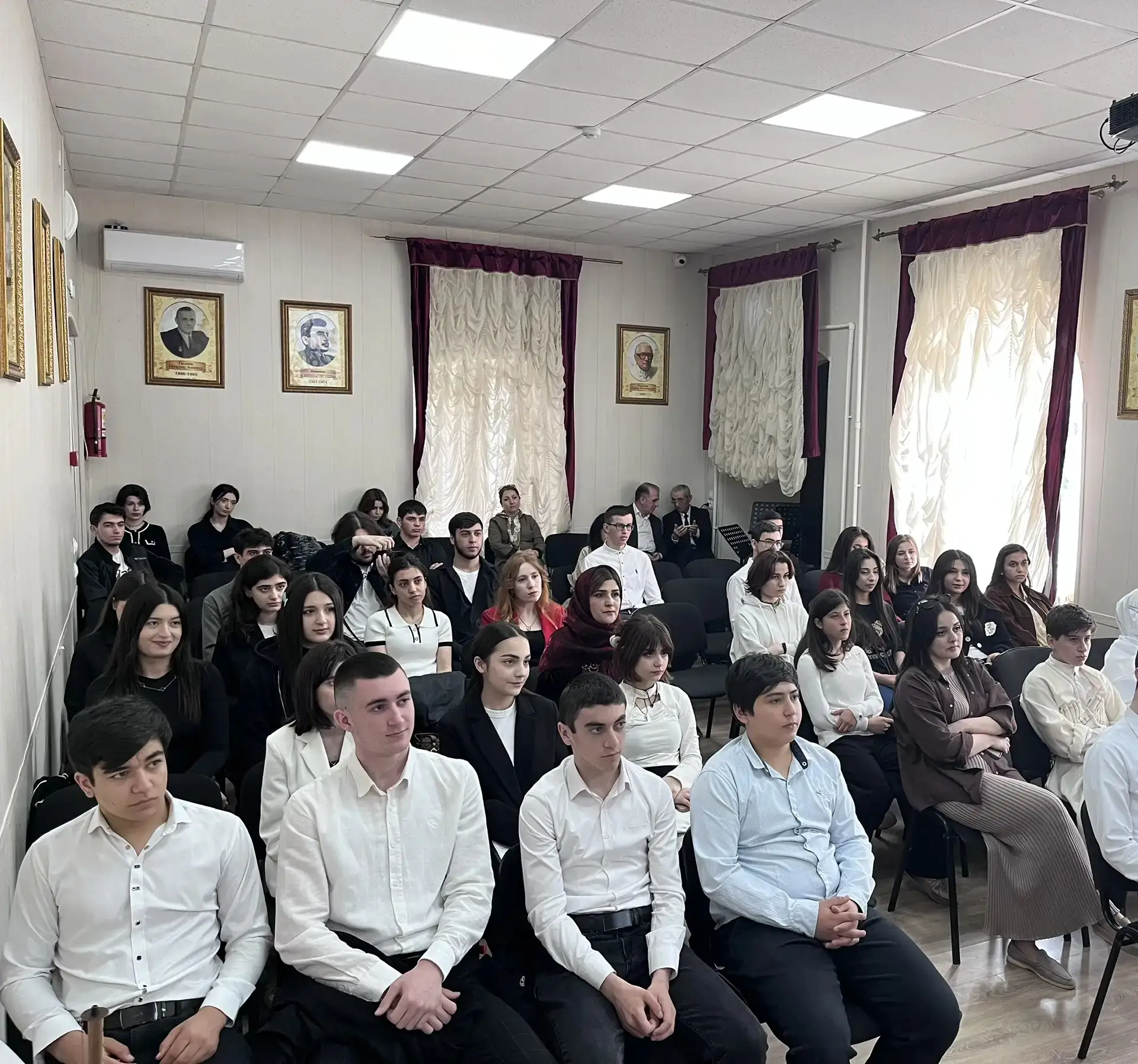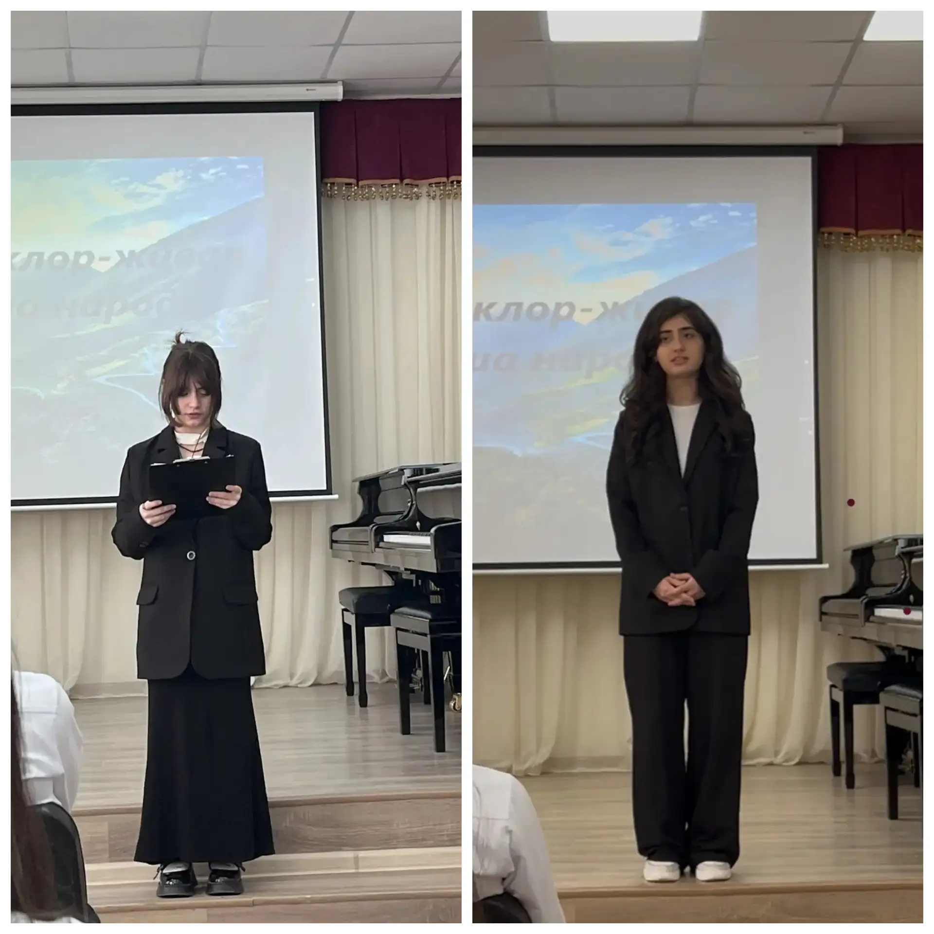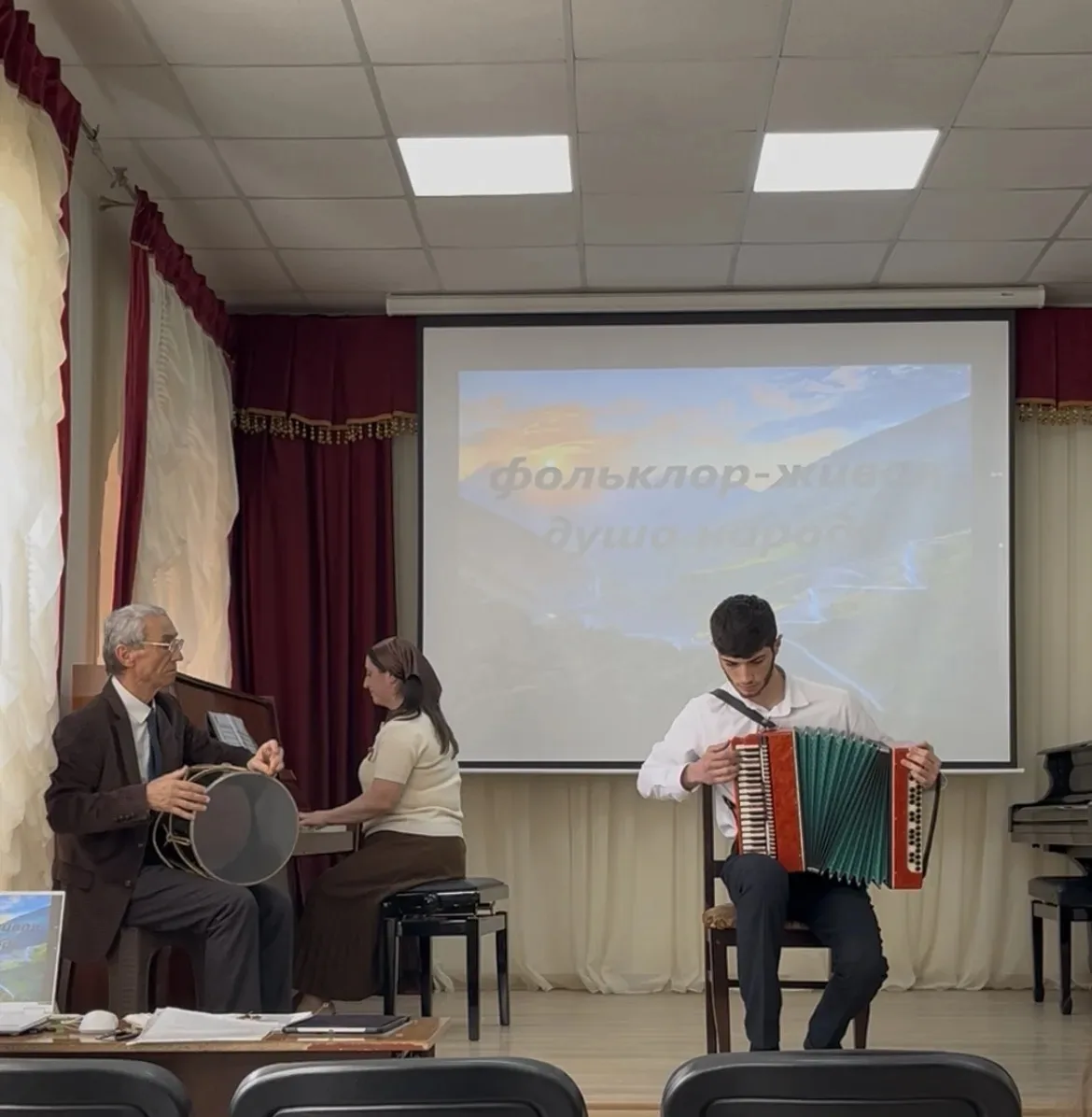 10 апреля преподаватели Шихмурадова З. А. и Ахмедова Г. И. провели открытый урок по предметам Музыкальный фольклор народов Дагестана и Народная музыкальная культура. Мероприятие приурочено к Году единства народов России. На занятии говорили о малой родине – Дагестане, о многочисленных народах, проживающих на территории Республики, о культуре. Студенты исполнили народные песни и инструментальные произведения. С даргинским народным танцем выступили гости занятия – учащиеся ДШИ №3. Занятие прошло для студентов 1 курса.