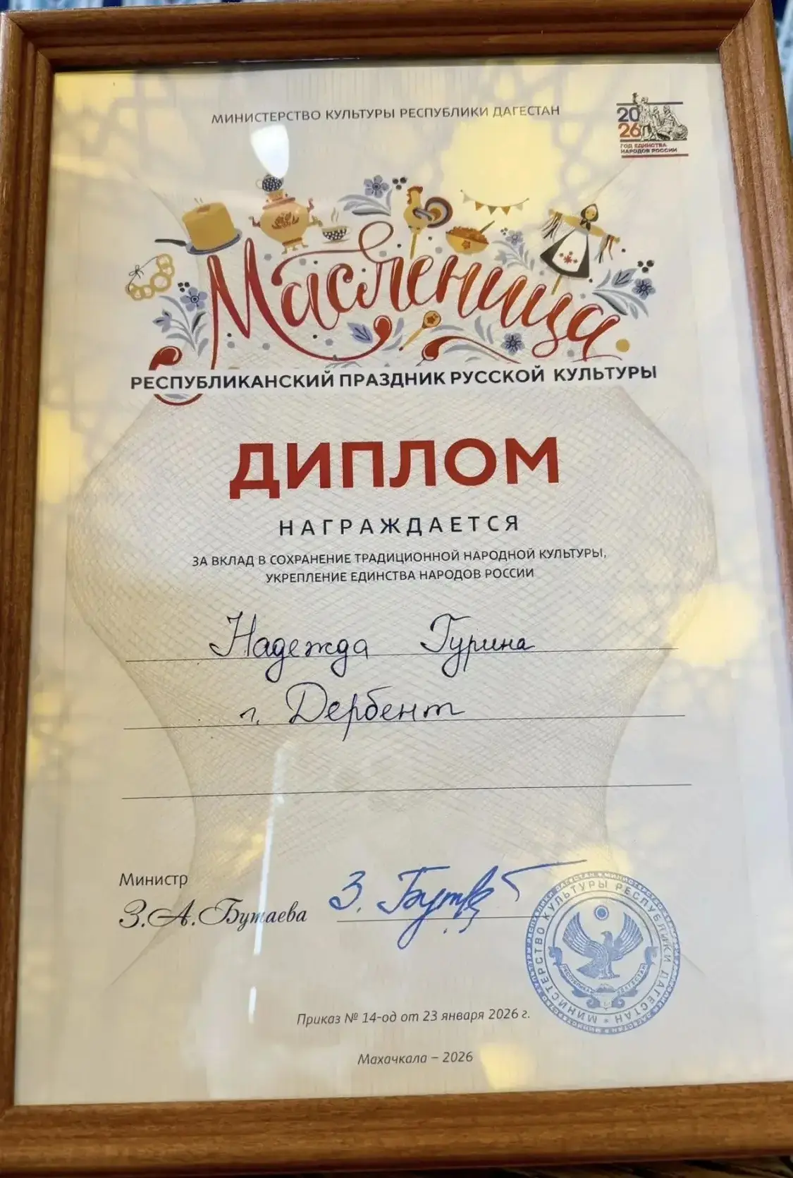Преподаватели ДМУ приняли участие в Республиканском празднике русской культуры «Масленица». 16 февраля площадка Русского театра в Махачкале превратилась в центр дружбы и народной культуры. В рамках Года единства народов России здесь прошел яркий Республиканский праздник русской культуры «Масленица». Директор ДМУ К. Г. Махмудова и педагоги З. М. Гаджиева, Б. М. Аскерова и Н. Гурина приняли участие в праздновании. Надежда Гурина, представляя город Дербент, приняла участие в концерте, исполнив песню Надежды Гуськовой «Два белых крыла».